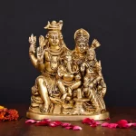 Brass Shiv Parivar Statue, 25 cm Big Brass Shiva Family Statue, Shiva-Parvati Idol with Ganesha and Murugan Kartikeya, Siva Pariwar Murti